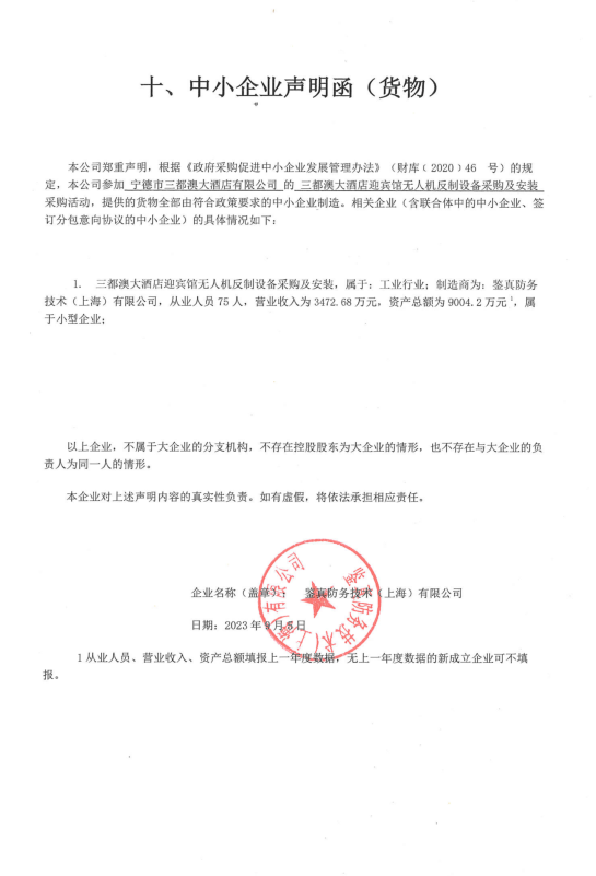 二、項目名稱:三都澳大酒店迎賓館無人機反制設(shè)備采購及安裝