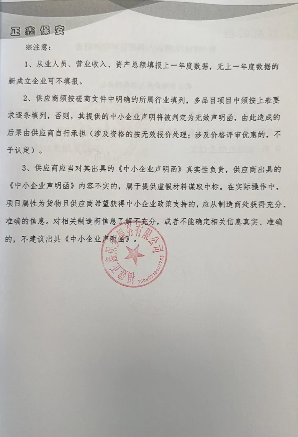 供應(yīng)商名稱(chēng):福建正鑫保安服務(wù)有限公司