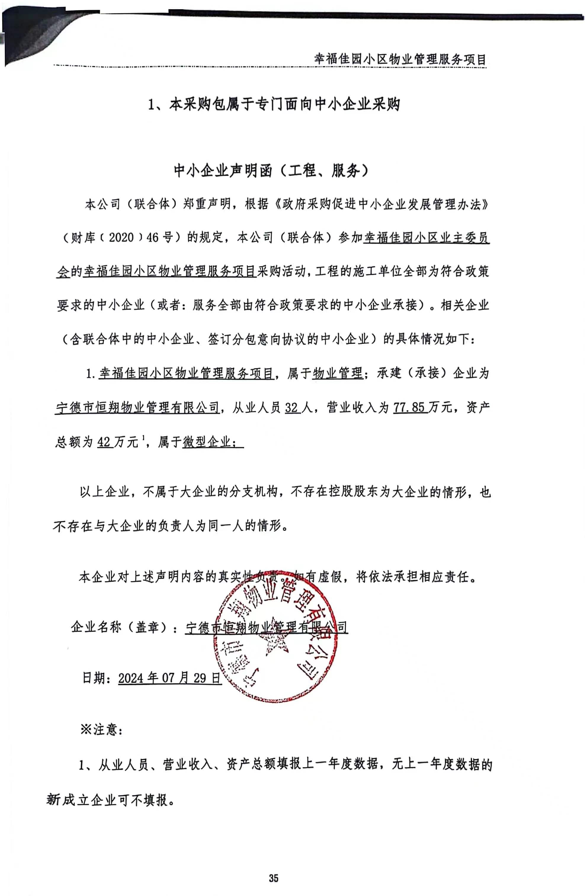 服務類(寧德市恒翔物業(yè)管理有限公司)