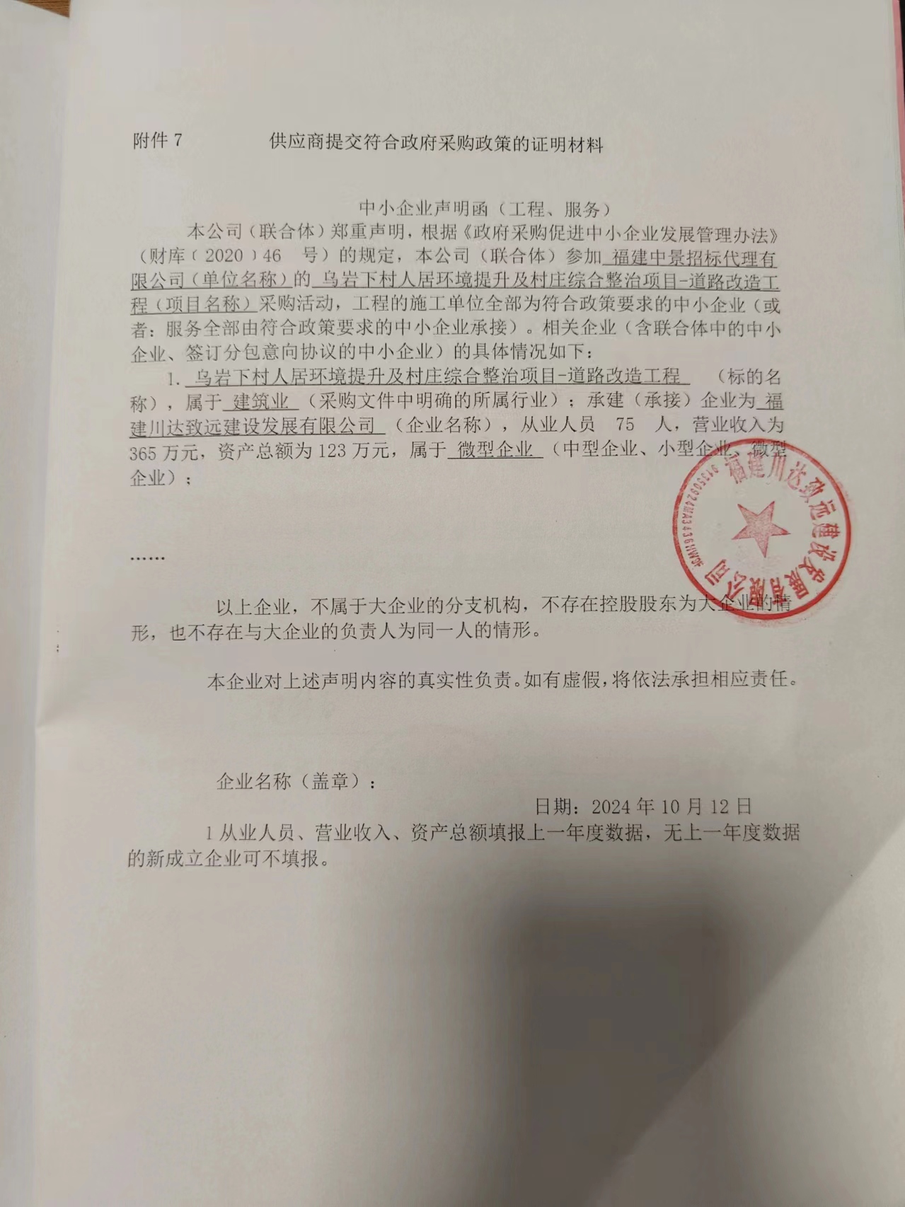 供應(yīng)商名稱:福建川達致遠建設(shè)發(fā)展有限公司