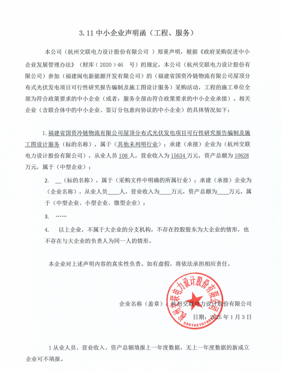 福建省國資冷鏈物流有限公司屋頂分布式光伏發(fā)電項目可行性研究報告編制及施工圖設(shè)計服務(wù)