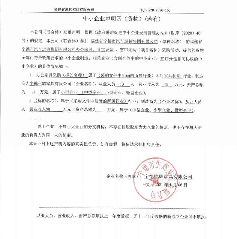 | 1 | 寧德市生輝家具有限公司(合同包1) | 辦公家具采購 | 詳見供應商響應文件 | 詳見供應商響應文件 | 詳見供應商響應文件 | 詳見供應商響應文件 |